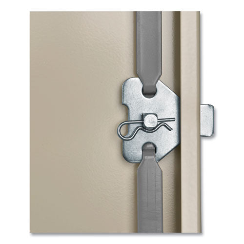 Commercial grade janitorial assembled steel storage cabinet. Fully assembled and ready for immediate use. Heavy-duty construction built to handle all your janitorial storage requirements. Two brushed chrome handles. Right handle uses three-point keyed locking to secure both doors. Three half shelves and tall storage compartment to accommodate brooms and vacuums. Storage cabinet is electrostatically painted with a tough, long lasting powder finish to ensure years of lasting beauty.