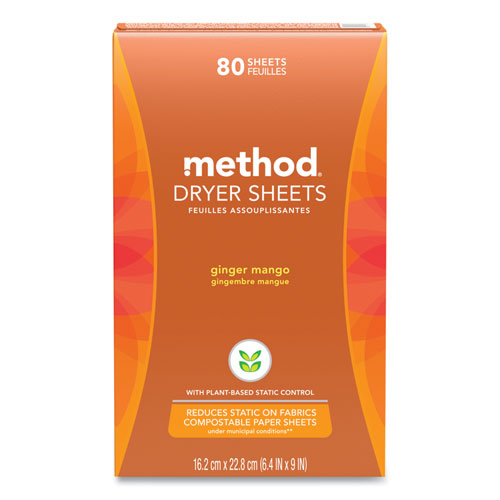 Dryer Sheets, Ginger Mango, 80/box, 6 Boxes/carton