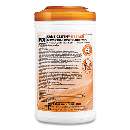 Sani-cloth Bleach Germicidal Disposable Wipes, 1-ply, 7.5 X 15, Unscented, White, 65/pack