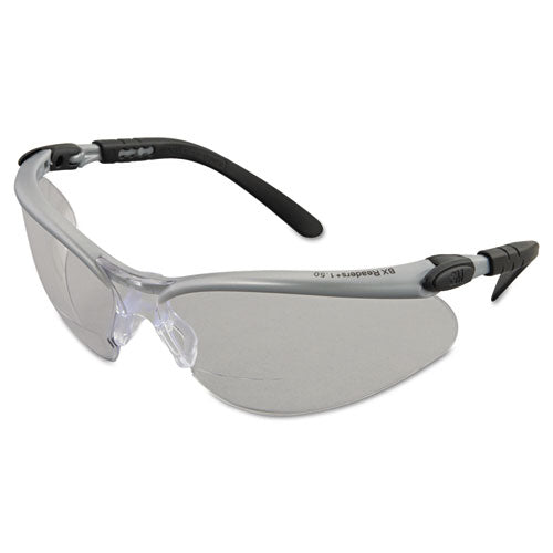 Bx Molded-in Diopter Safety Glasses, 1.5+ Diopter Strength, Silver/black Frame, Clear Lens, 20/box