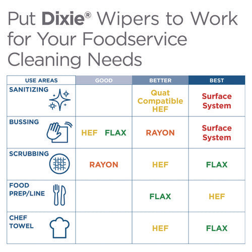 Superior towels for all your wiping and sanitizing needs. Specially designed for fast, streak-free wiping on tabletops, countertops, even greasy stove tops.
