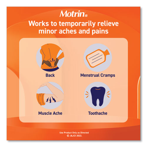 Get relief from minor aches and pains with Motrin® IB tablets. Safe and effective when used as directed, these ibuprofen tablets temporarily reduce fever and relieve minor aches and pains due to the common cold, headache, muscular aches, minor pain of arthritis, toothache, backache, and menstrual cramps. Each Motrin® IB tablet contains 200 milligrams of ibuprofen.