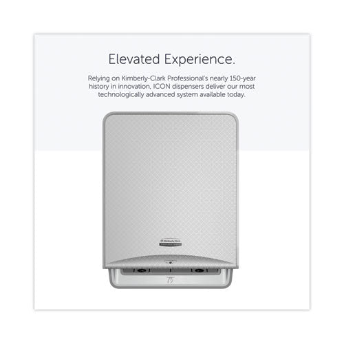The Kimberly-Clark Professional ICON™ automatic paper towel dispensing system features first-of-a-kind versatility and effortlessly enhances the look of the restroom with one of an exclusive line of six designer faceplates. Inspired by human-centered design, the ICON™ dispenser features intuitive control panel, front-load battery bay and dampened hinge technology. Using direct-drive technology the ICON™ dispenser has a patented dual sensor technology that delivers worry-free, touchless 99.99% jam-free dispensing and is compatible with your choice of Kleenex or Scott roll towels.