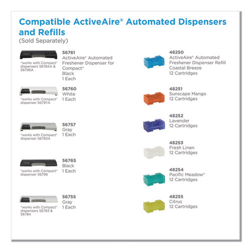 ActiveAire® Air Care Systems elevate the restroom experience with coordinating scents in the stall, on the wall and at the urinal. The collection includes Automated Air Freshener Dispensers for Compact® Toilet Paper Dispensers, Powered and Passive Whole-Room Air Freshener Dispensers and Low-Splash and traditional Deodorizer Urinal Screens. A variety of scents are available, providing consistent, pleasant fragrance throughout the restroom. Designed for use in offices, restaurants, healthcare, industrial and educational facilities, ActiveAire® products help you minimize customer complaints while showing customers that you care. GP PRO is a division of Georgia-Pacific Consumer Products. We deliver well-designed, durable and easy-to-maintain professional solutions to meet the handwashing and cleaning needs for a range of business applications.