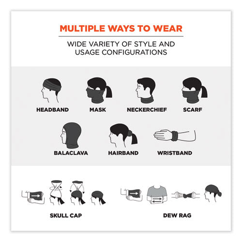 The Chill-Its 6484 Reflective Multi-Band protects workers from sun, dust and debris, while also featuring a unique all-over reflective print to enhance visibility at night or in low-light conditions. To keep workers comfortable and dry, this neck gaiter is made with an ultra-soft, stretchable and moisture-wicking rayon-spandex blend. The soft and flexible performance material allows this multi-band to be worn in a variety of ways, including a headband, neck gaiter, face mask or face covering, hat, dew rag and more. The low-bulk design can also be worn under a hard hat. Ideal for construction, landscaping, roofing or anyone needing additional face and neck protection from the elements. It can also be used for recreational activities such as gardening, hiking, fishing and more.