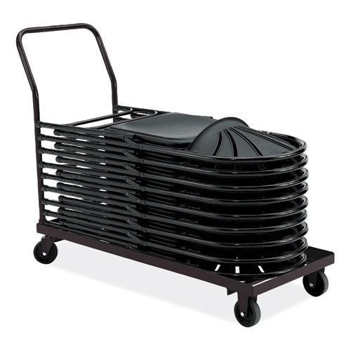 Stack and transport up to 26 NPS® 1100 Series folding chairs. This durable 11 ga brown powder-coated steel unit features four nylon casters (two that swivel) for easy mobility over nearly any surface. Each caster boasts a 275 lb weight capacity for a total of 1,100 lbs.