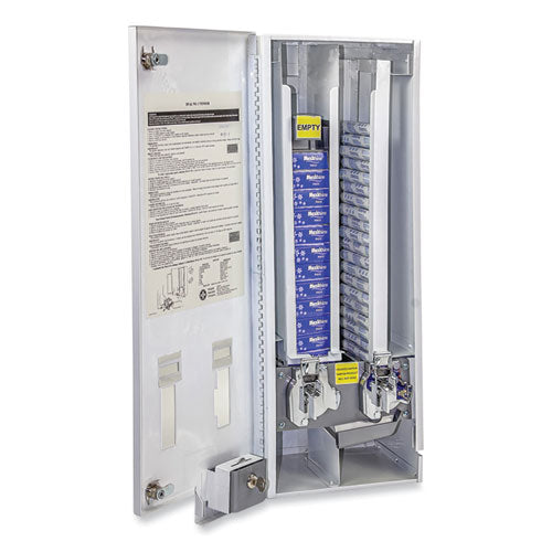 Dual Sanitary Napkin/tampon Dispenser, 25 Cent Coin Mechanism, 11.13 X 7.63 X 26.38, White/blue