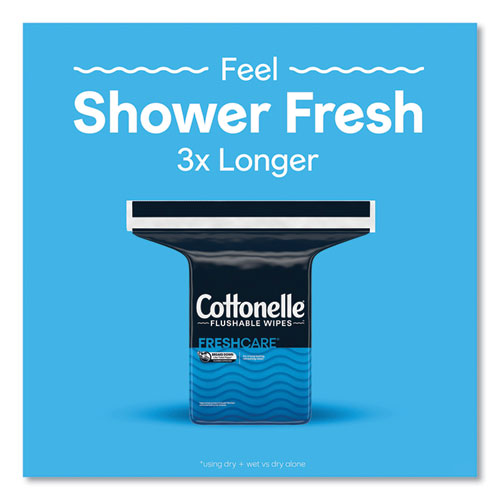 For a superior clean* that's fresh, gentle, and effective, choose Cottonelle® FreshCare Flushable Wipes with the CleaningRipples™ Texture. Cottonelle® bathroom wipes are 100% flushable, remove odor-causing bacteria and offer a large, dual layer wipe to clean better than when using dry toilet paper alone. These sanitary wipes are sewer-safe and septic-safe. *using dry + moist vs. dry toilet paper alone.