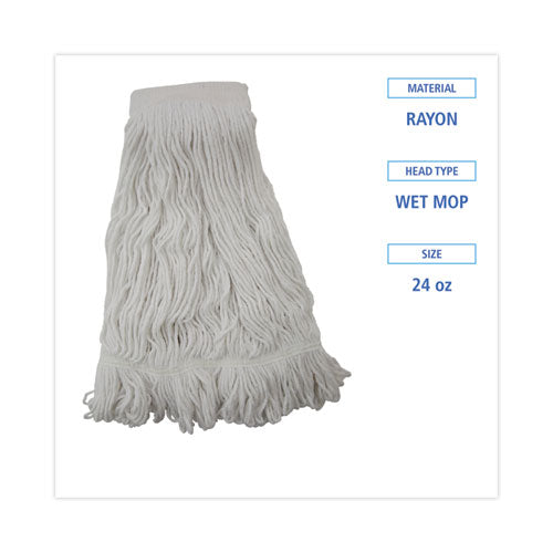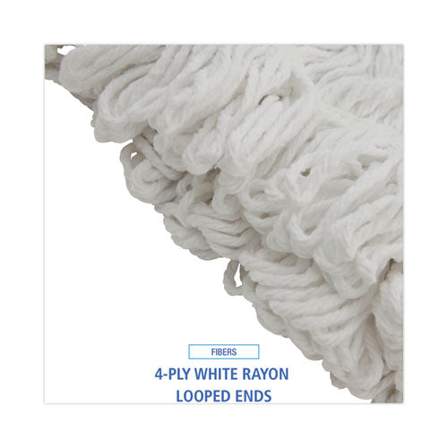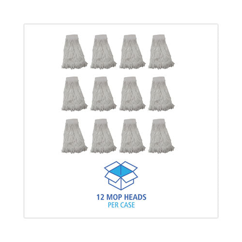 Boardwalk® Saddleback Loop-End Wet Mop Heads are constructed from standard, four-ply, natural yarn for a quality mop head. The looped end design sheds less lint, reduces fraying and unraveling. The durable, double-sewn tailband prevents tangles and provides more floor coverage on a variety of floor types. The heavy-duty, five-inch, vinyl mesh headband securely holds full-weight, premium fiber strands. Designed for use with clamp-style or gripper-style mop handle, which is sold separately.