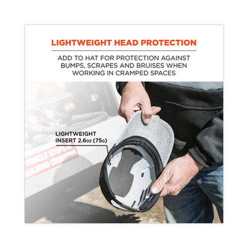 The Skullerz 8945 Universal Bump Cap Insert is a lightweight, impact-resistant shell that easily inserts into any baseball cap, hat or other headwear for protection against bumps, scrapes, bruises and other minor head injuries. With flexible sides and convenient trim-to-fit customization, this bump cap insert easily fits a variety of hats/caps and head shapes. The shell is made of lightweight, durable polypropylene and designed with maximum ventilation for breathable airflow that doesn't compromise protection. An interior foam pad reduces impact but does not absorb odors for fresh all-day wear.
