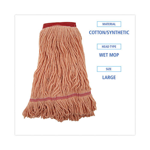 Super Loop Wet Mop Head, Cotton/synthetic Fiber, 5" Headband, Large Size, Orange, 12/carton