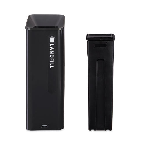 Rubbermaid Commercial Products Sustain Containers are a decorative and adaptable recycling solution made to improve your facility's sustainability compliance. Modular system allows the container stations to be customized and grow with each recycling program's needs. Restrictive waste stream openings and colored labels provide easy visual cues for patrons, making recycling easier and improving compliance with growing regulations.