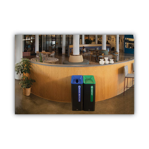 Rubbermaid Commercial Products Sustain Containers are a decorative and adaptable recycling solution made to improve your facility's sustainability compliance. Modular system allows the container stations to be customized and grow with each recycling program's needs. Restrictive waste stream openings and colored labels provide easy visual cues for patrons, making recycling easier and improving compliance with growing regulations.