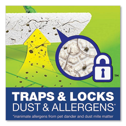 Removes dust, dirt, hair and allergens from finished floors. Use with disposable Swiffer® cloths (sold separately). Lightweight swivel head adjusts to get into hard-to-reach places. Use with dry or wet cloths. Mop handle breaks down into four parts for storage and to adjust length.