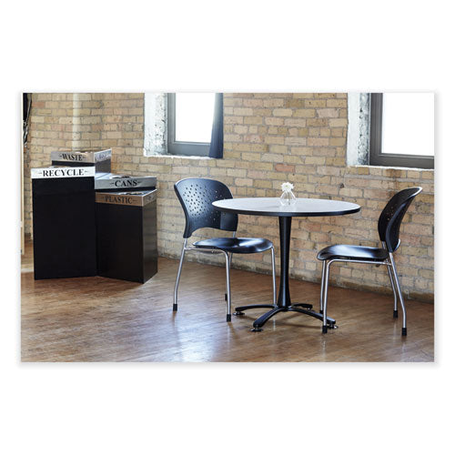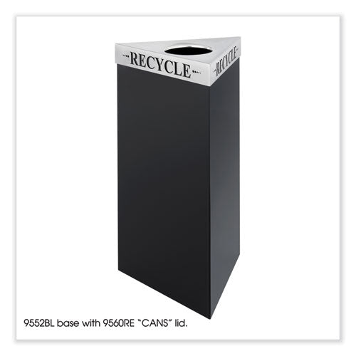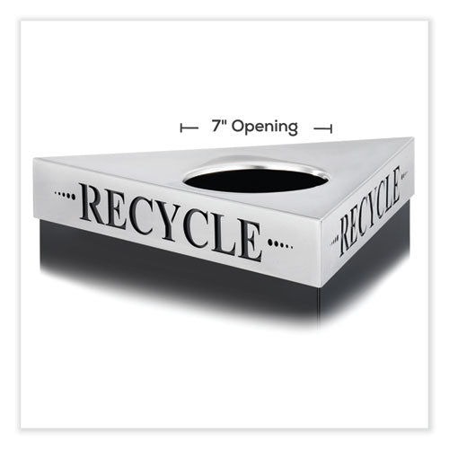 Sleek, stainless steel triangular lid has laser-cut inscription (unless otherwise specified) to identify recyclables. Part of Trifecta™ flexible design with four receptacles (sold separately), they offer a multitude of configurations to accommodate any workplace.