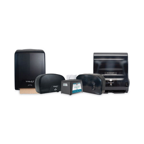 This high capacity mini jumbo roll bath tissue dispenser features up to 1,500 feet of capacity! Designed for use with VT110 premium mini jumbo roll bath tissue, the VT1003 mini jumbo bath tissue dispenser has a dual roll system for high-traffic environments. A great space saving solution for any facility with limited space. This dispenser is easy to load and reload.