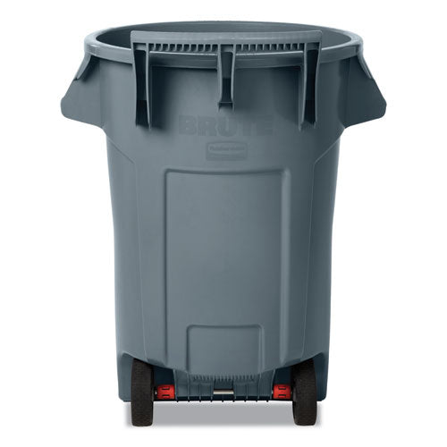 Improve your productivity potential while significantly reducing your risk of injury. Vented Round BRUTE® Container with Wheels stands apart with an integrated hand-truck design, enabling you to move loads five-times more easily than with standard BRUTE® containers. Unique hand-truck format practically forces users to leverage their shoulder and torso muscles as well as their arm muscles to help foster proper posture, minimizing the potential for back strain. An ergonomic handle and kickplate simplify tilting tasks, especially when moving heavier loads. DuraTread never-flat wheels roll freely and smoothly, even over rough terrain. Built with the toughness you’d expect from traditional BRUTE® vented containers, the container’s body features the same reinforced bottom, seamless surface and vented channels, all of which work to provide superior performance while making can liner removal and cleaning tasks much easier. Special UV inhibitor provides enhanced outdoor durability in even the most extreme commercial environments. Compatible with BRUTE® Self-Draining Lids (sold separately).